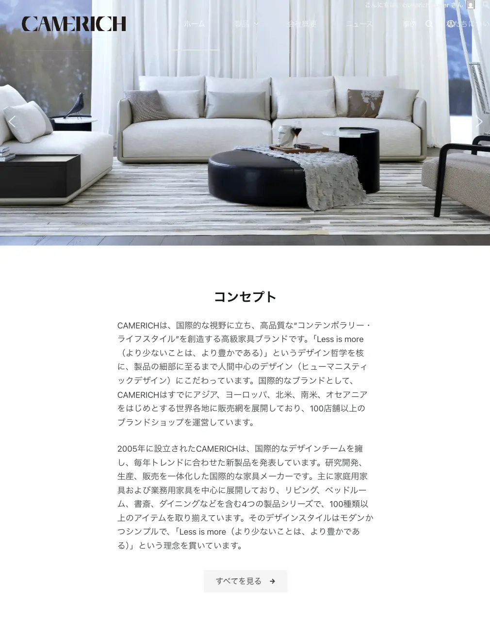 家具ブランド「camerich(カメリッチ)」の公式Webサイト制作事例です。ブランドの世界観が伝わるビジュアル表現と、ユーザーが迷わず商品・情報にたどり着ける導線設計を重視しました。 スマートフォンでも快適に閲覧できるレスポンシブ対応を行い、更新・運用を想定した構成で制作しています。